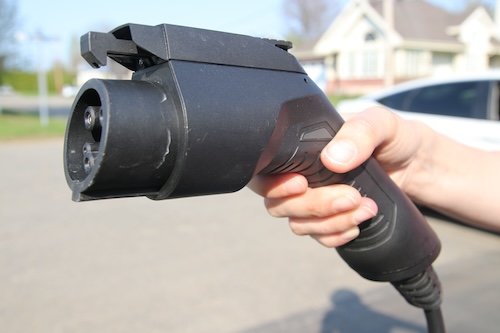 Les propriétaires de véhicules Tesla doivent utiliser un adaptateur J1772/NACS (fourni lors de l’achat du véhicule ou disponible chez Tesla et ailleurs également) pour se recharger sur une borne 120 V ou 240 V équipée d’un connecteur J1772.